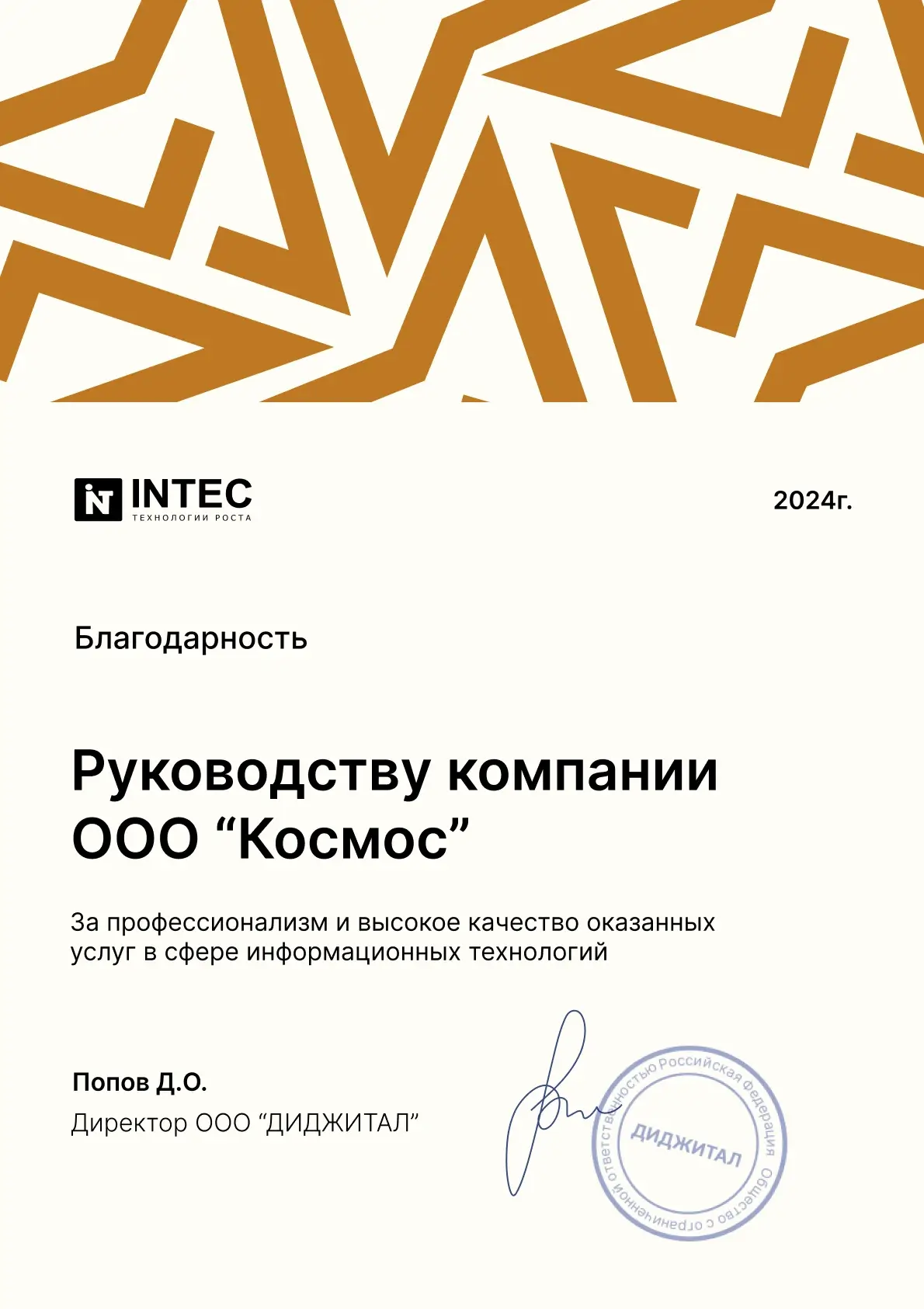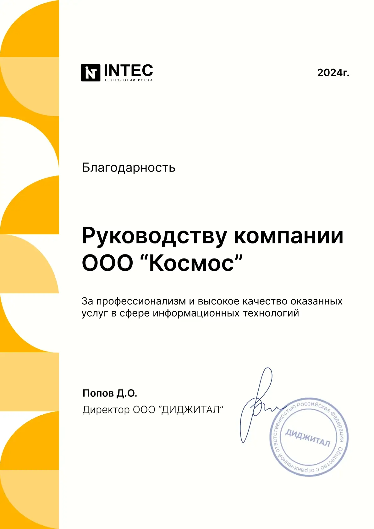 Благодарственное письмо