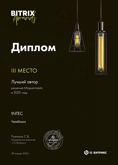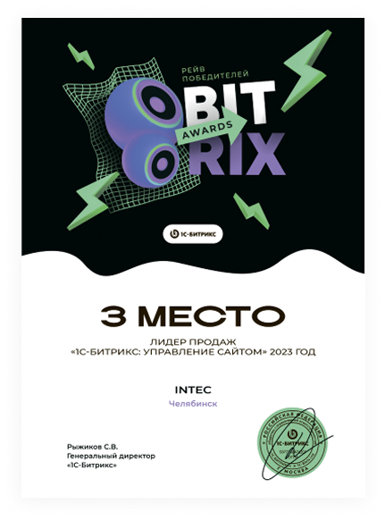 3 место Лидер продаж «1С-Битрикс: Управление сайтом» 2023 год